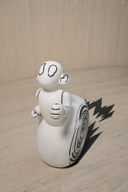 大理石で出来た手足のパーツは漫画のコマを意識し、少し平面感を残した煙に対しなるべく飛び出るように配置した。